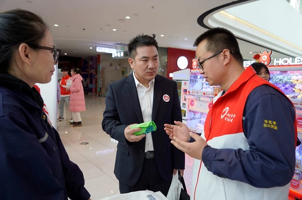 活动中,八师石河子市团委副书记荆军来到展台详细询问了企业发展情况、产品类型,听取志愿者讲解全生物降解塑料制品的优势及辨别标识。他对中化学东华天业将雷锋精神融入环保事业,以实际行动践行低碳绿色发展理念表示高度赞扬,并希望中化学东华天业志愿者持续开展环保志愿服务,让“绿水青山就是金山银山”理念深入人心,让祖国的天空越来越蓝,水越来越清。