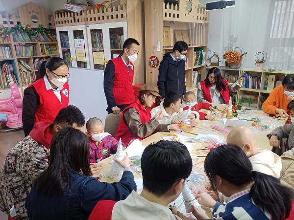11月23日,东华科技项目管理部党支部组织志愿者前往“口罩天使爱心小屋”看望白血病儿童,与小朋友们一起开展手工制作活动。